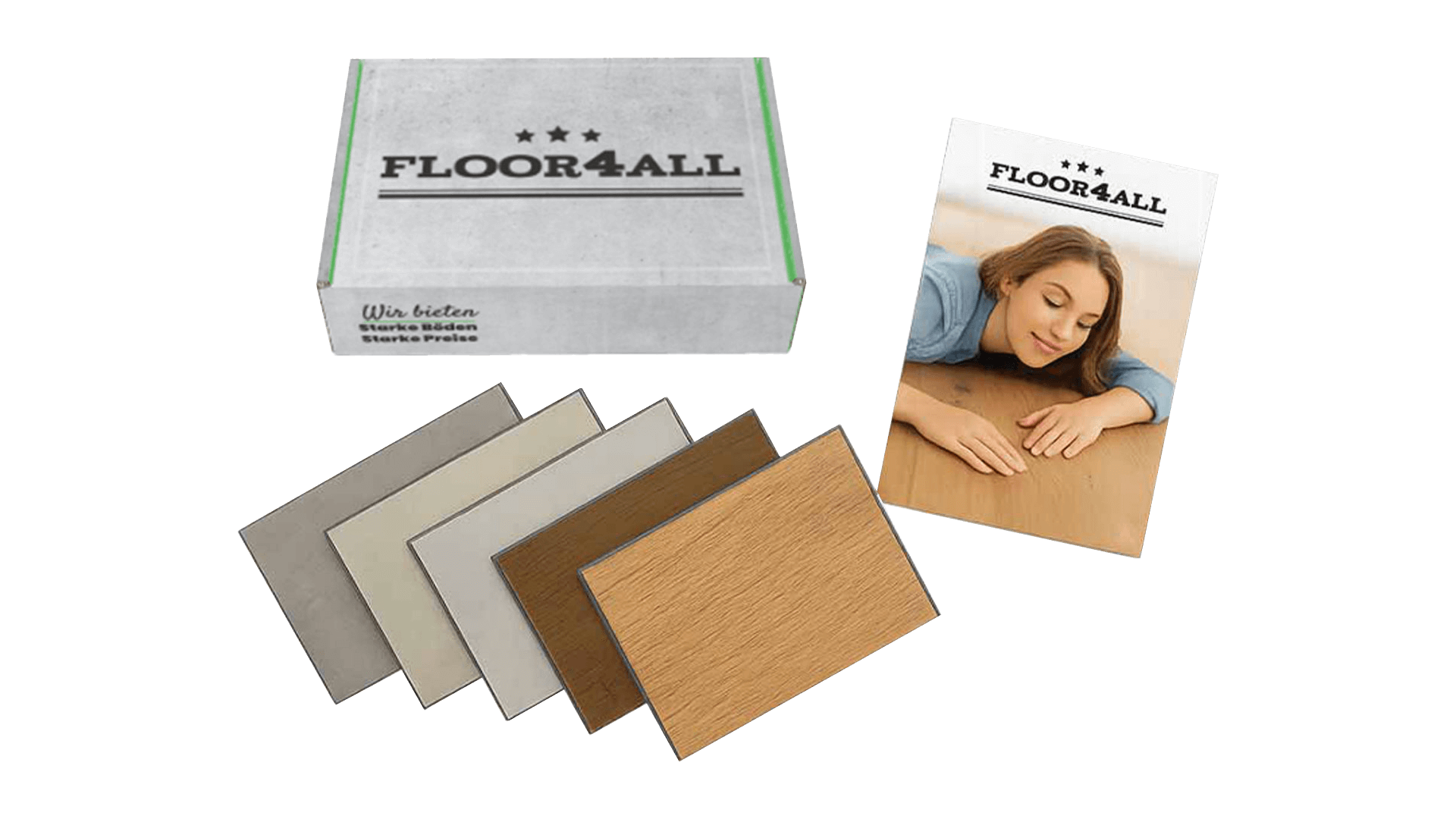 Mit unserer Musterbox erhältst du fünf Bodenmuster deiner Wahl – versandkostenfrei und ganz ohne Verpflichtung.